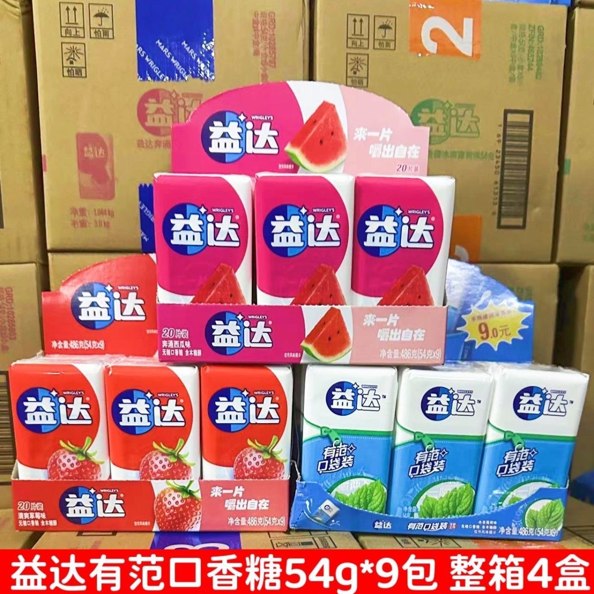 緑矢益達有範無糖ガム20枚口袋54g * 9箱いちごスイカミント味キシリトール