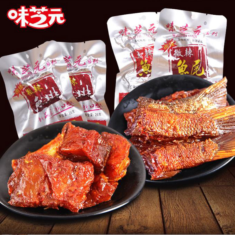 味芝元香辛料魚の列26g魚の尾の魚の列湖南の軽食は魚の塊の間食の卸売りの辛い軽食です。