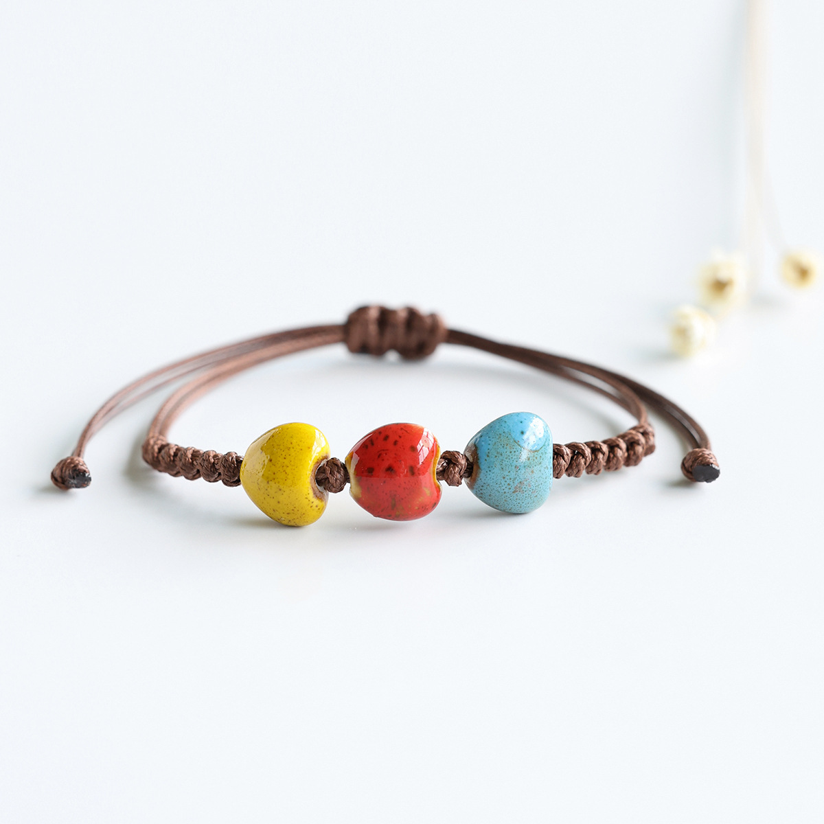 小清新森系は簡単で、陶磁器の磁器のビーズのブレスレットの文芸のファッション的な編み物の手綱の流行の小さいアクセサリーを合わせます。