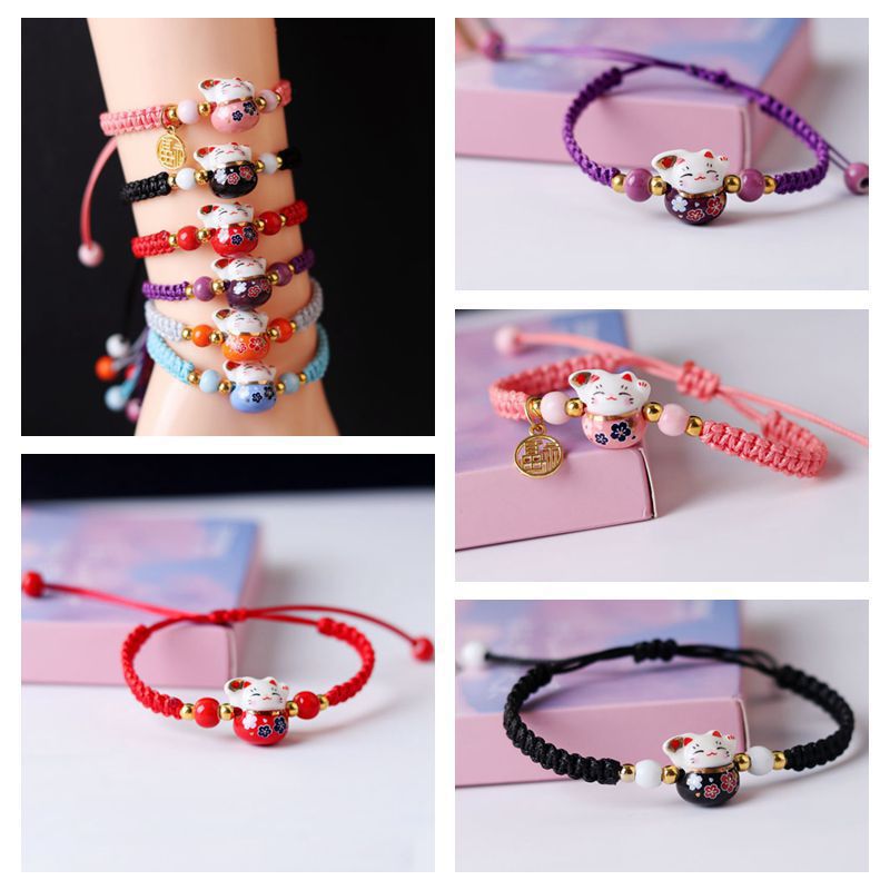 招き猫の手串陶磁器のアクセサリーは手で縄を編みます。