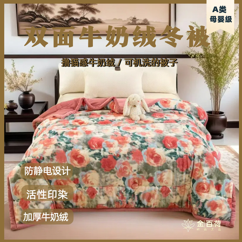 卸売り2024新型牛乳パイル冬は保温両面パイル布団学生寮布団の祝日プレゼントを厚くされた