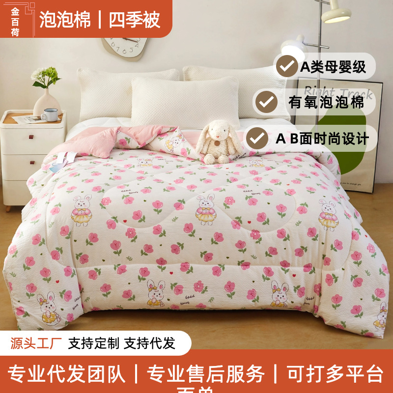 在庫あり、即発送、代発送対応。新作ミルクベルベット豆豆キルト。洗濯機洗い可能。学生寮用四季対応キルト、キルト芯、卸売。