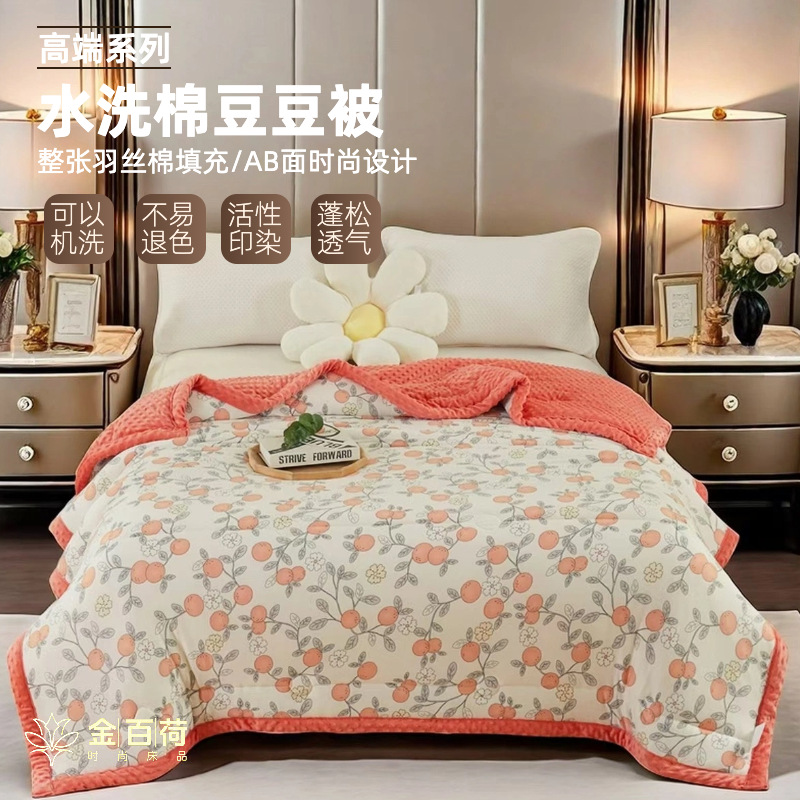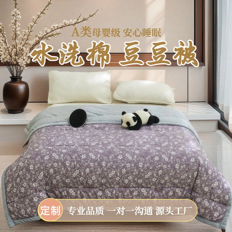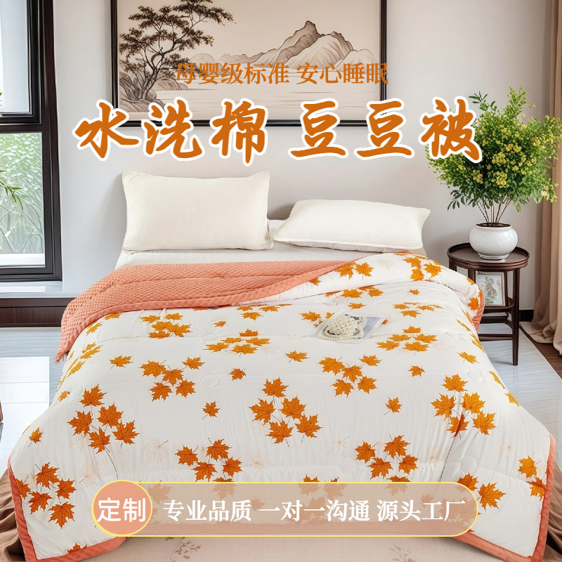新しいカスタマイズされた OEM 洗濯機で洗えるミルクベルベットビーンキルト洗えるコットンプリント四季キルトコア卸売