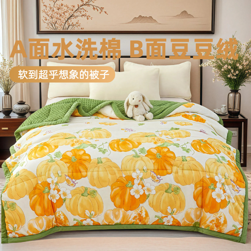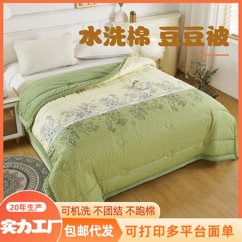 生放送人気のウォッシュドコットン秋冬キルトミルクコンデンス豆キルト洗濯機で洗えるキルトコアシングルとダブルキルト春と秋のキルト
