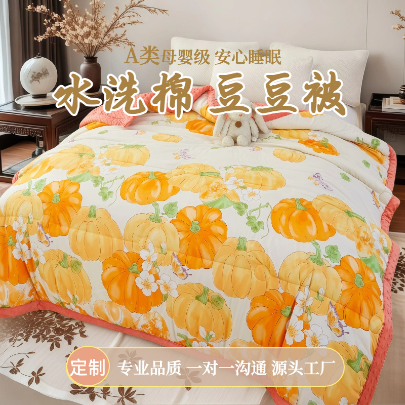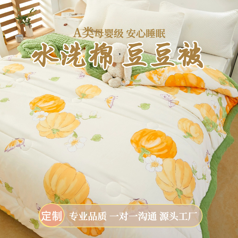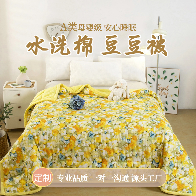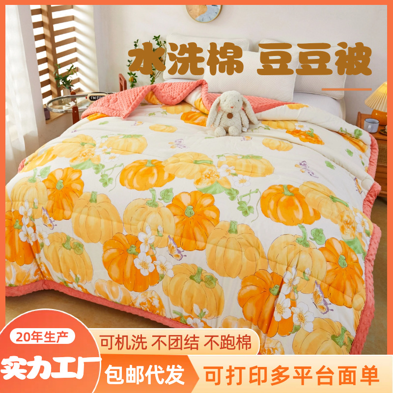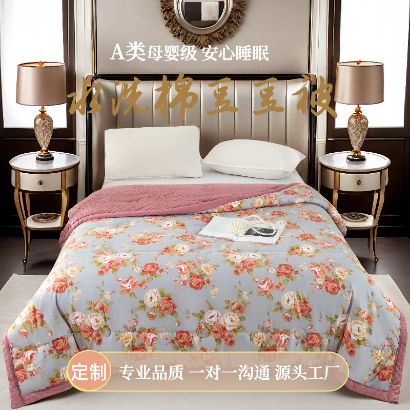 新しい加工カスタマイズされたミルクベルベットビーンキルト洗濯機で洗える肌に優しい洗える綿キルトコア学生寮通気性