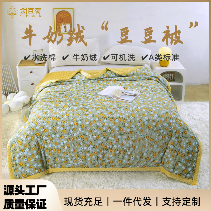 新しいカスタマイズされたOEMミルクベルベットビーンキルト洗浄綿プリント四季キルトコア学生寮春と秋のキルト