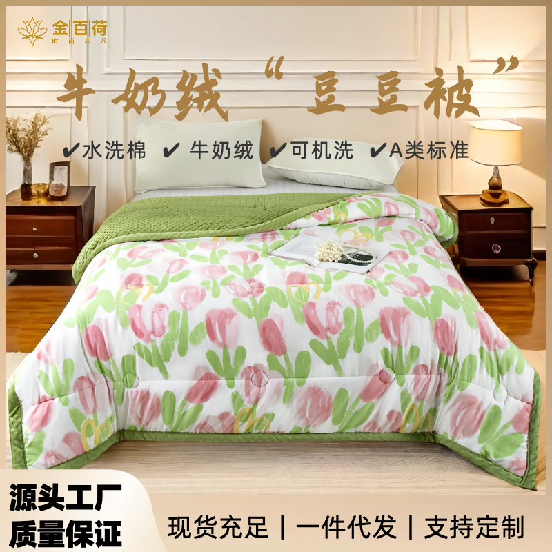 工場在庫あり、新しいスタイルの洗浄綿ビーンキルト、ミルクベルベットビーンキルト、学生寮の春と秋のキルト芯