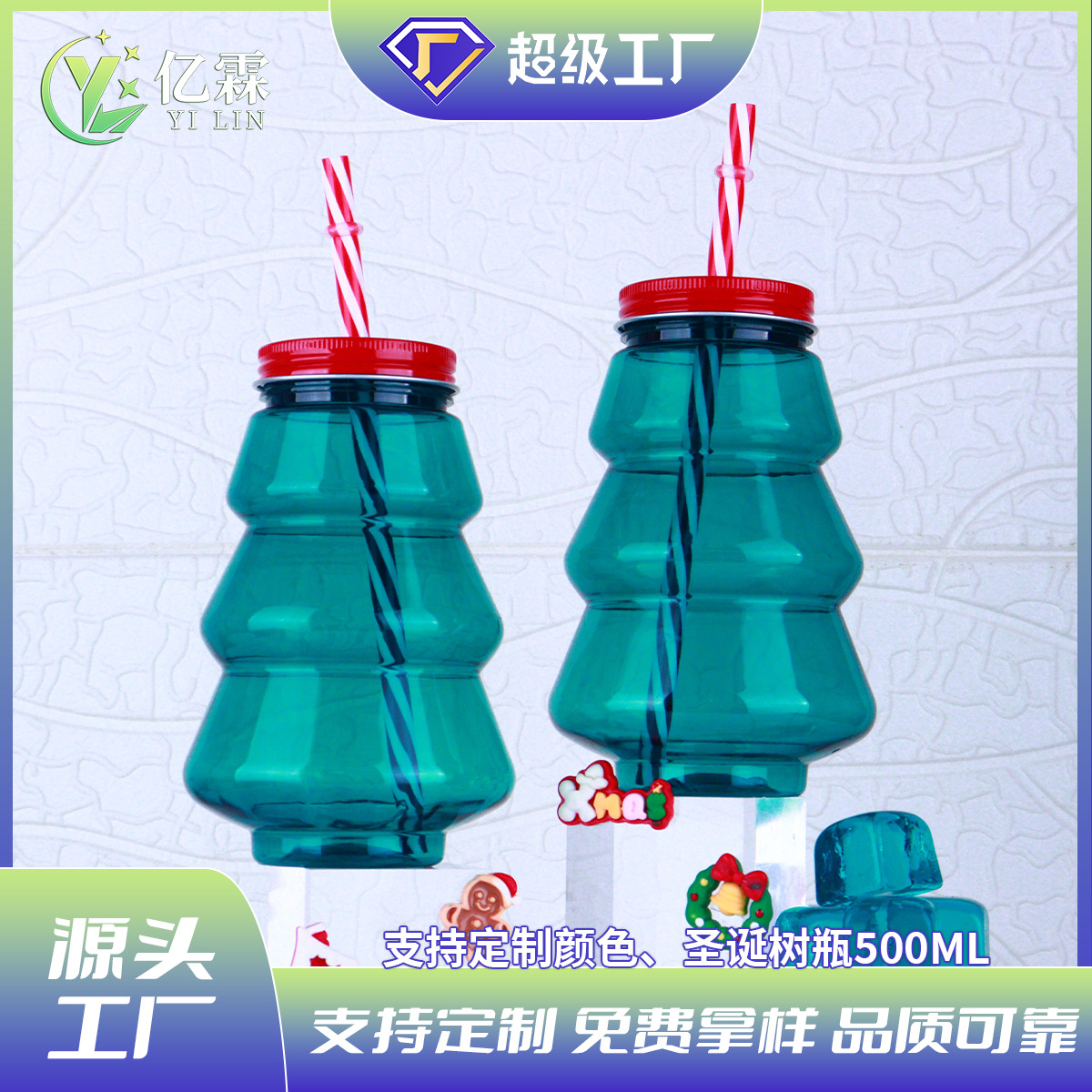 500mlクリスマスツリーボトルクリエイティブネット赤使い捨て透明petプラスチック飲料分注ボトルアルミ蓋飲料ボトル