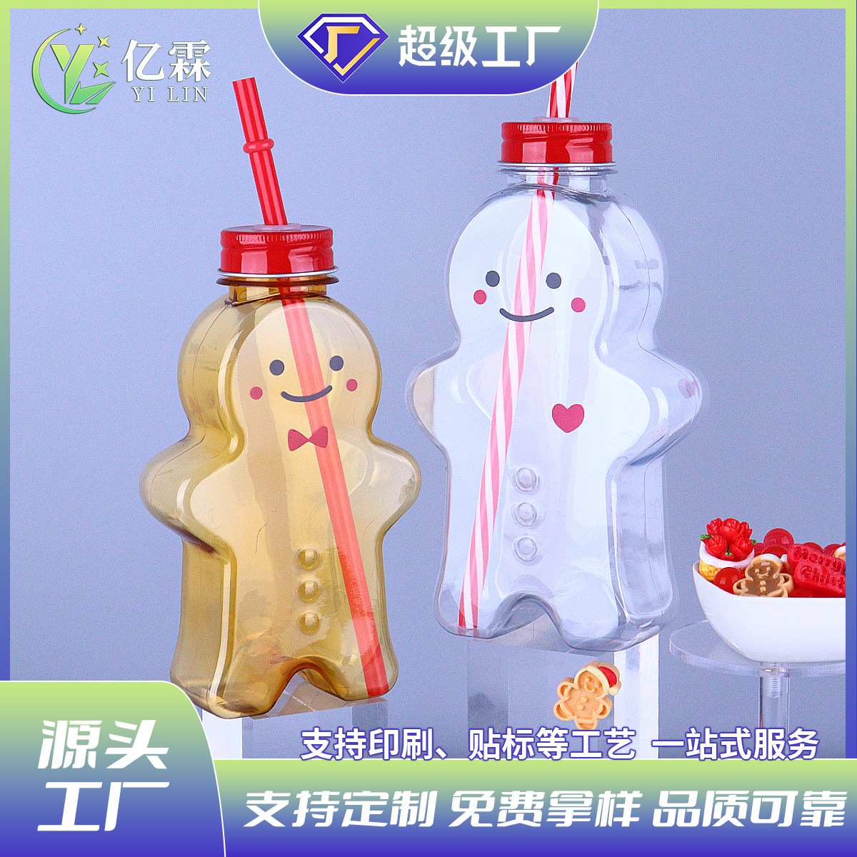 ジンジャーマン飲料ボトルpet透明赤アルミ蓋ボトルストロー付き漫画プラスチックボトル分注ボトル悪役ボトル