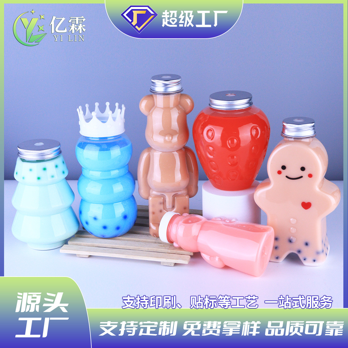 ベアー瓶230ml現物カバーネット赤哺乳茶瓶プラスチックミルクティーカップブラシストロー包装pe飲料瓶