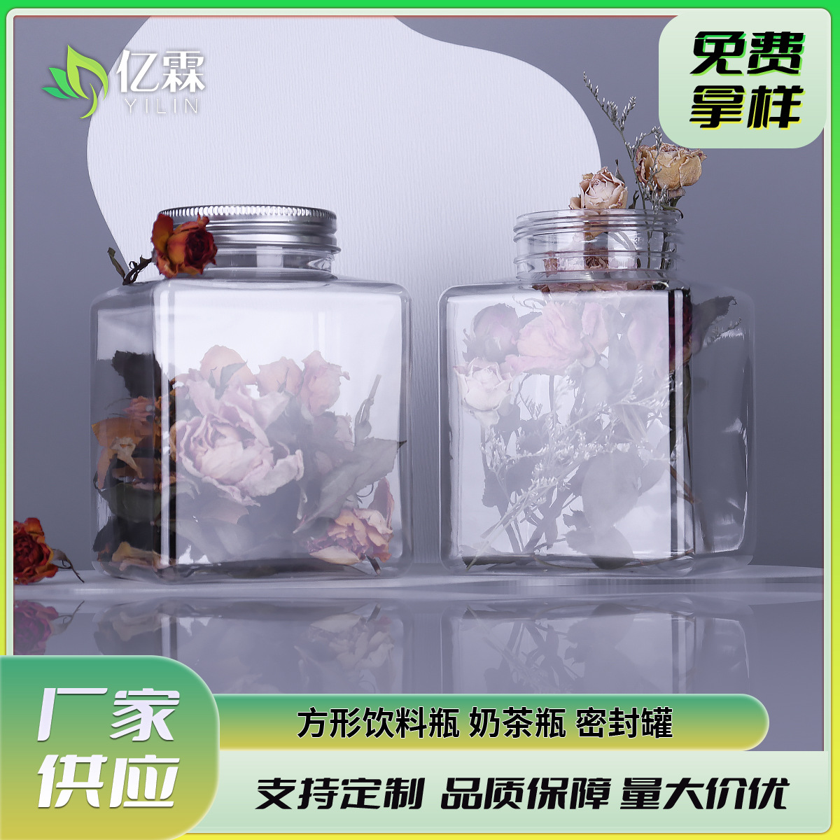 密封缶瓶透明プラスチック缶分注瓶ナッツ缶茶葉缶空瓶角瓶角缶スナック缶
