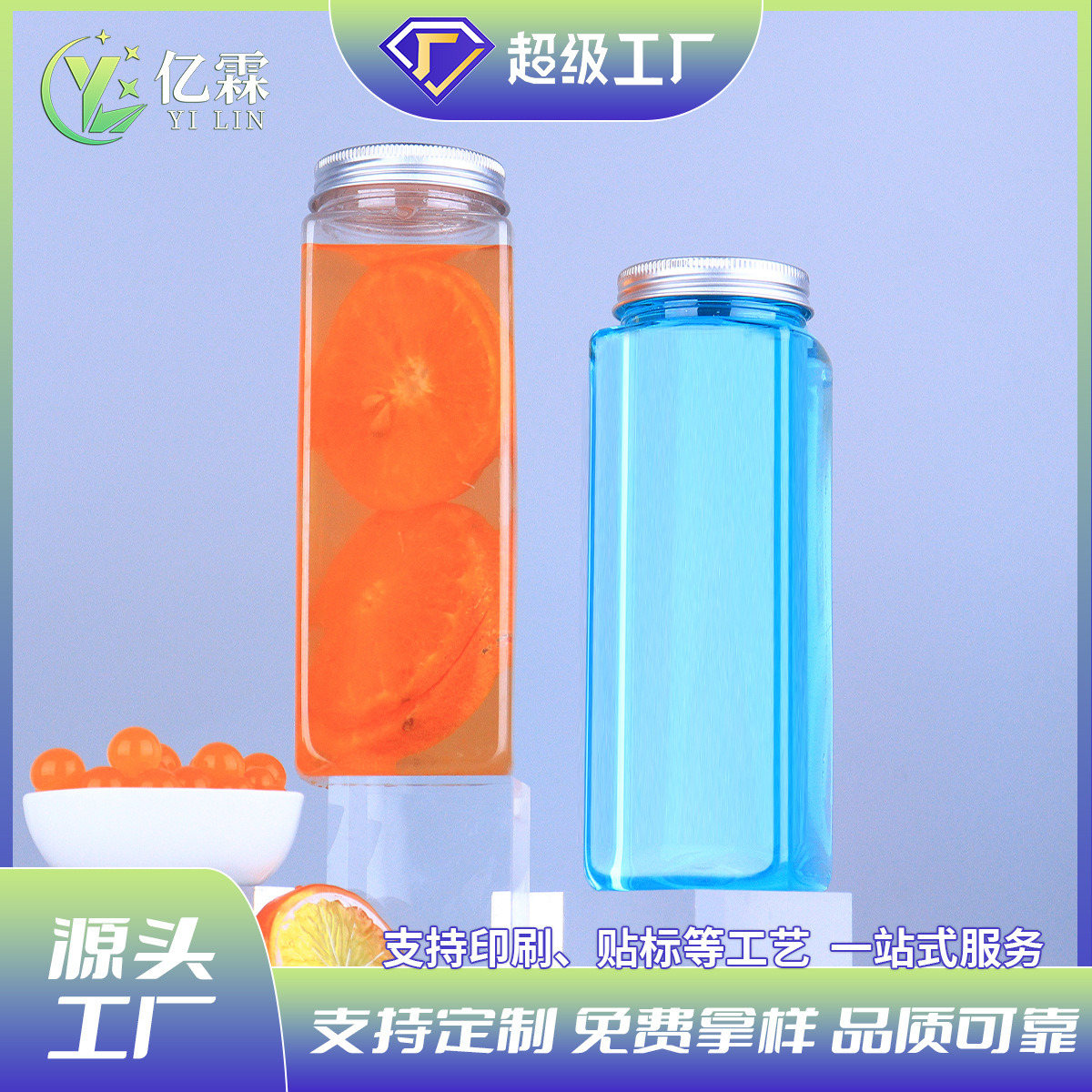 角型飲料瓶角瓶アルミ蓋500mlネット赤哺乳茶瓶空瓶pet透明プラスチック瓶漢方薬分注瓶