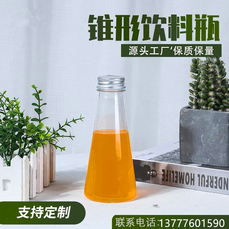冷たいお茶の瓶の哺乳瓶380mlのアイデアの錐の形の瓶の使い捨ての瓶の透明なプラスチックの飲み物の瓶のジュースの瓶