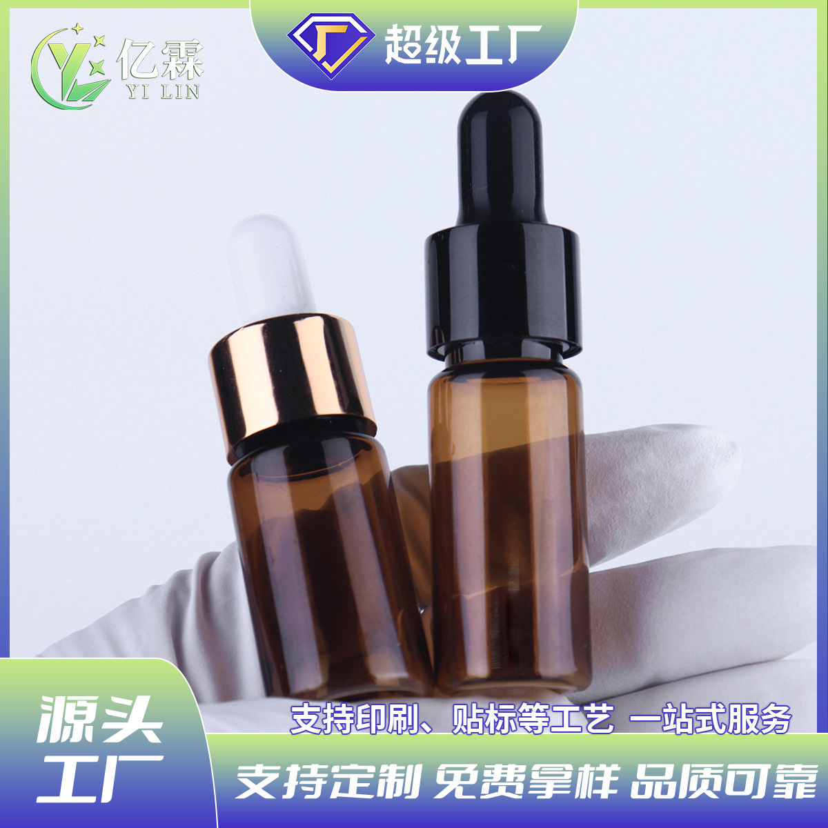 エッセンシャルオイルボトルエッセンシャルボトルプラスチックヘッドのガラス滴管ボトル滴液茶色プラスチックボトル化粧品サンプル液体分注ボトル