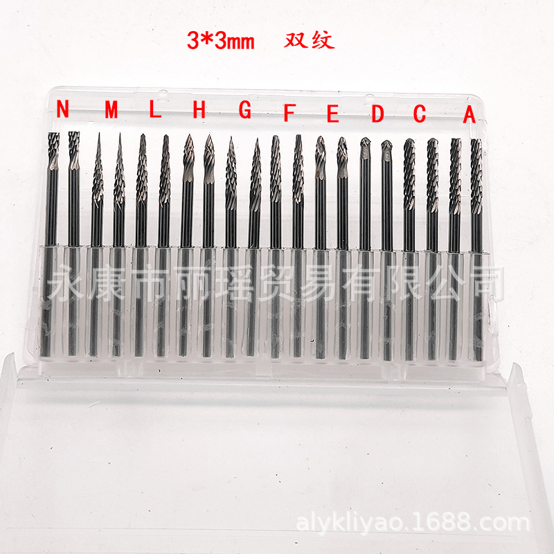 電気研削ヘッドタングステン鋼研削ヘッド2.34mm * 2.34mm硬質合金回転ヤスリ3*3mmエンドミル20本