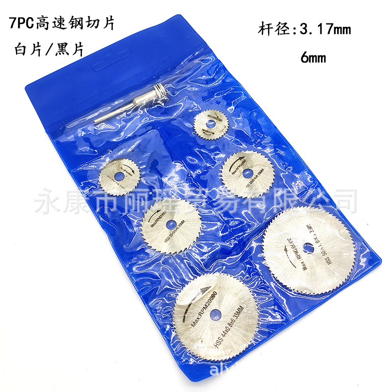 7pc黒ずんだ高速鋼切断片切り木、プラスチック、薄い銅の薄いアルミニウム、ミニ小型鋸片