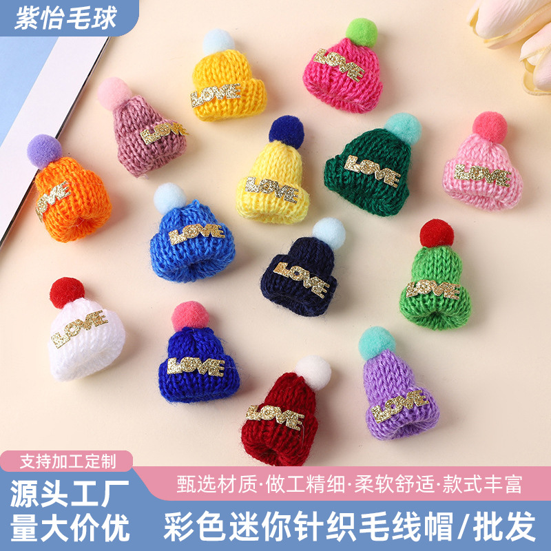 カラフルなニット帽、韓国風ミニハット、クリエイティブな「love」クリスマス飾り、卸売手作り