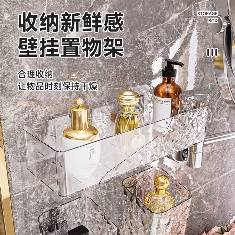トイレ水波紋物棚透明浴室壁掛け穴なし壁角洗面用品化粧収納棚