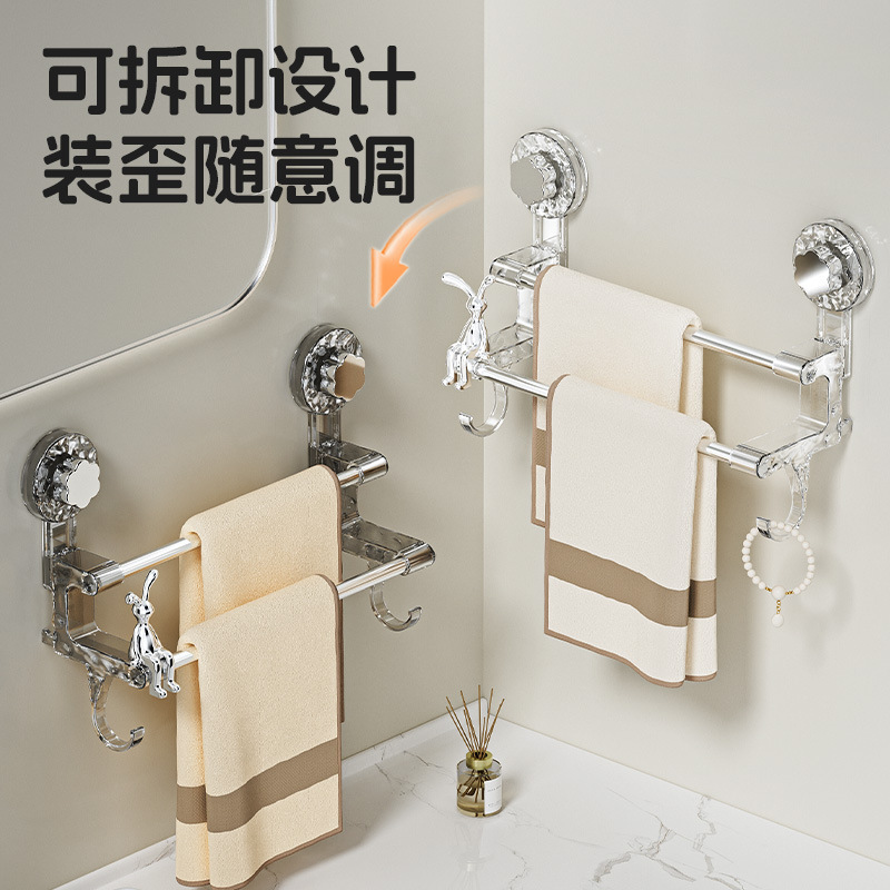 吸盤二重棒タオル掛け穴なし掛け棒浴室タオル掛けトイレ伸縮式棚壁掛け式