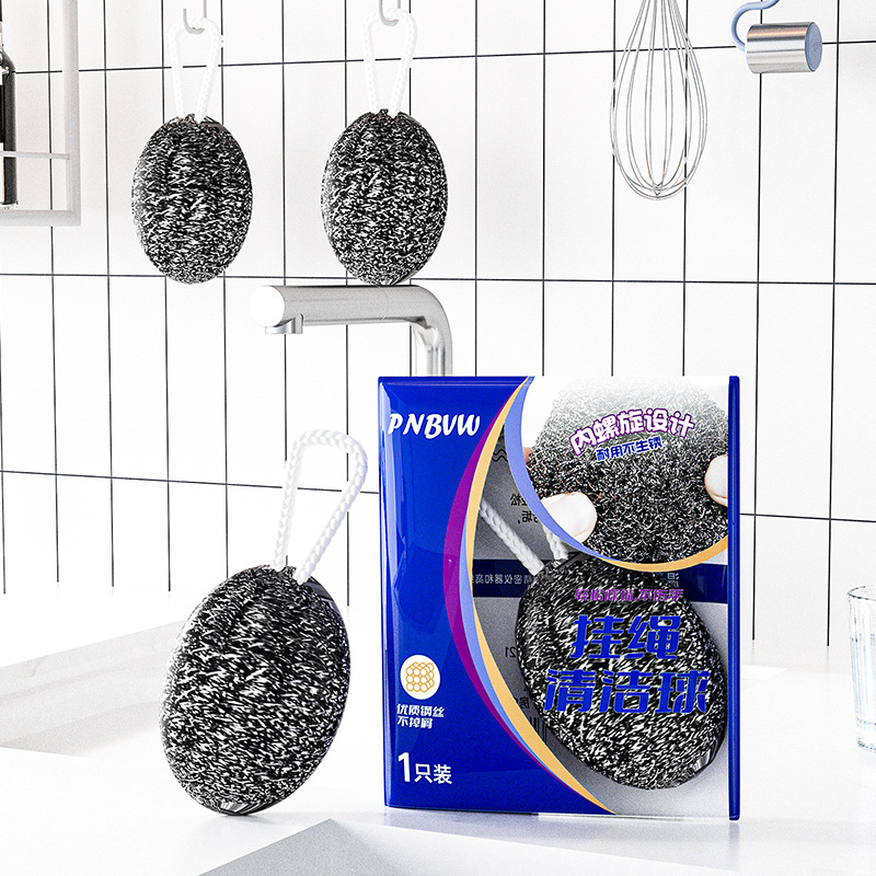 ロープ付きのスチールボールを持っています。ステンレスの清潔なボールを持っています。