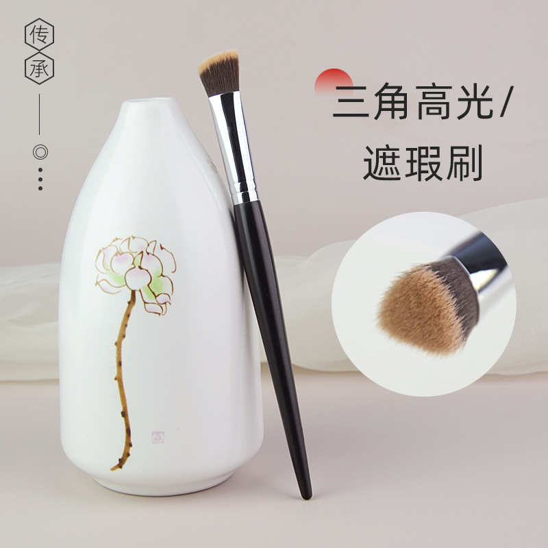 エボニー斜め三角形コンシーラーブラシ、輪郭を整え、部分的なハイライトを明るくするブラシ、柔らかい毛、ブラシ跡なし、滄州純白化粧ブラシ