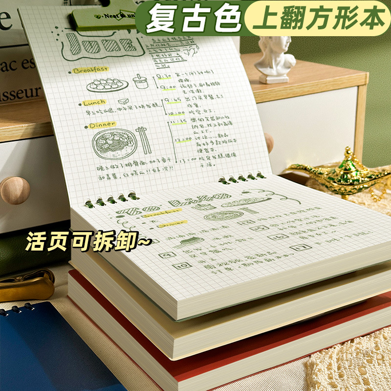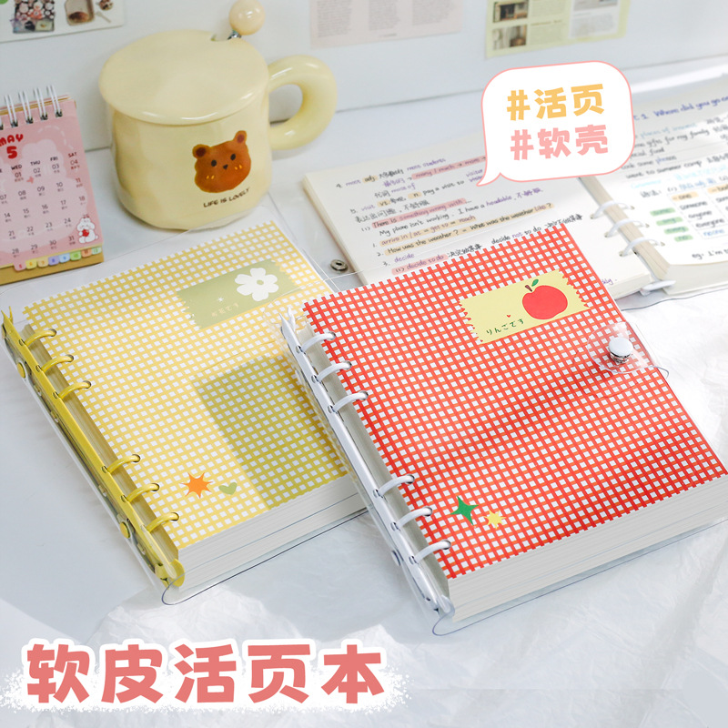 PP カバー フリップアップ スクエア ルーズリーフ チェック柄ノート レトロ シンプル 横線 ルーズリーフ ブランク ハンドブック