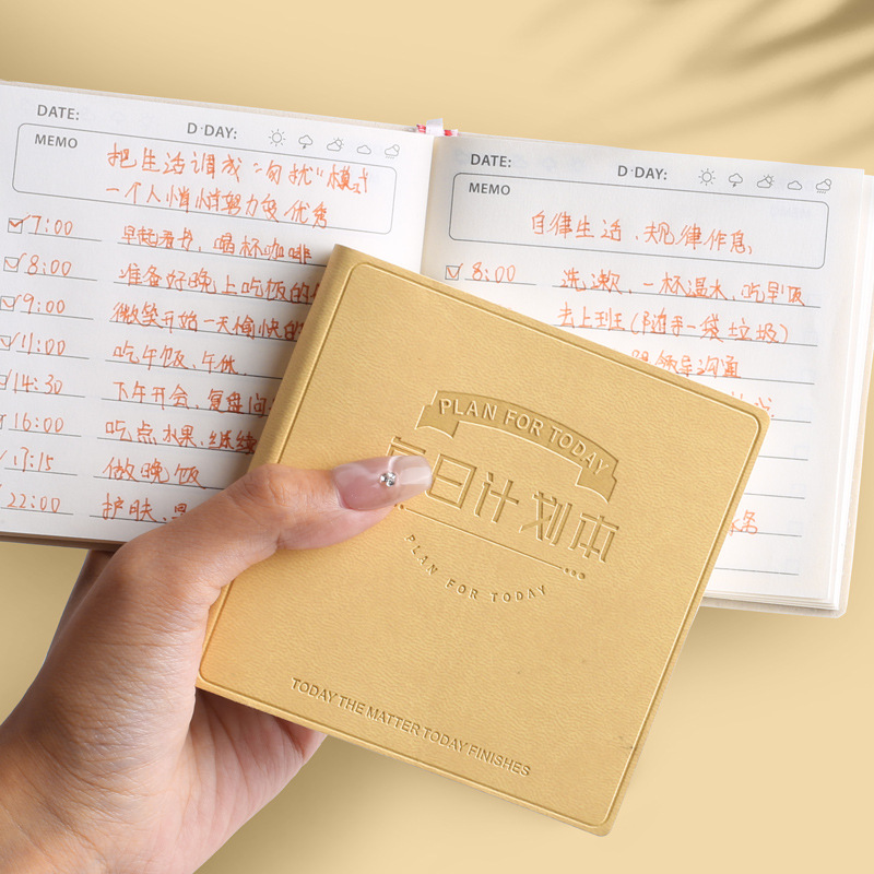 スクエアデイリープランナー、ポータブル時間管理プランナー、高見えレザーカバー、自己規律チェックインノート