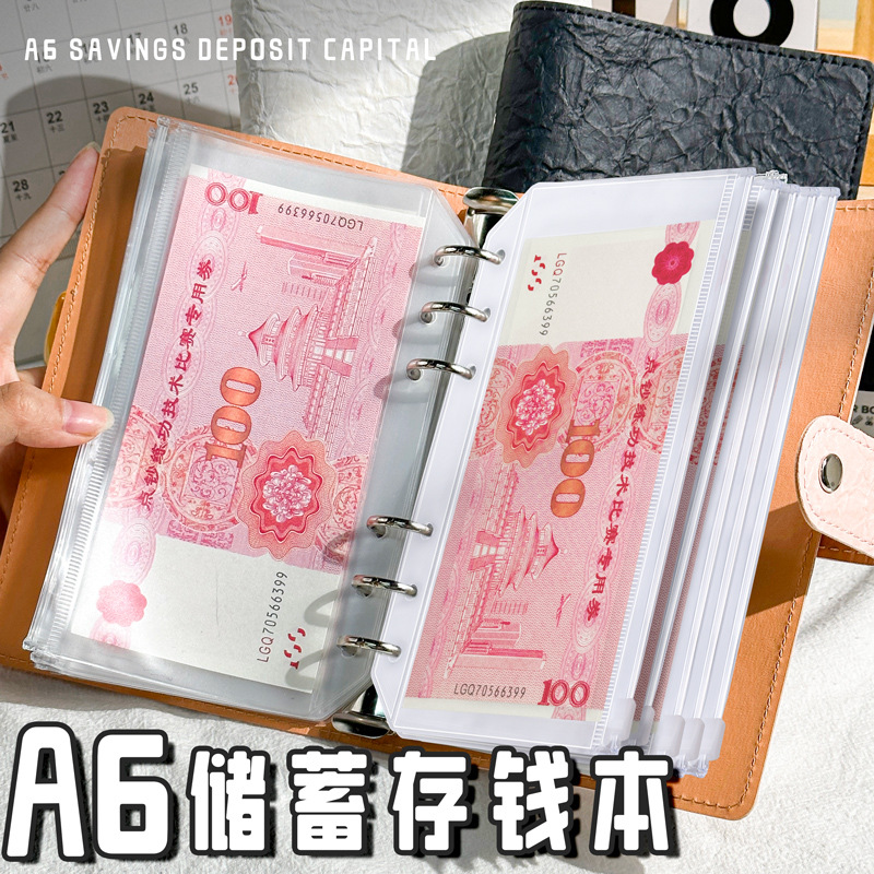 プリーツ大容量A6現金貯金帳、家計簿、財務管理紙幣貯金ルーズリーフ会計帳