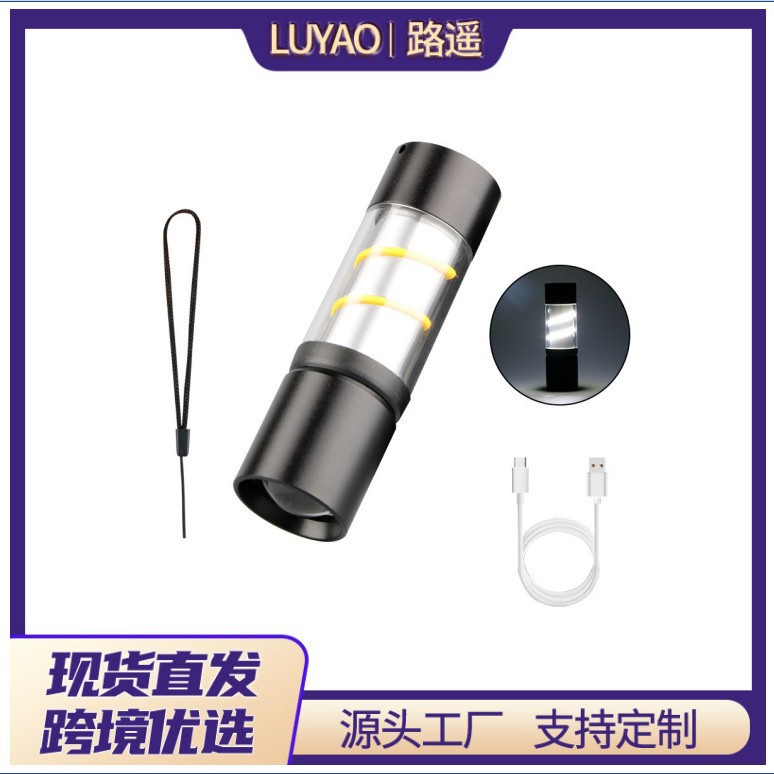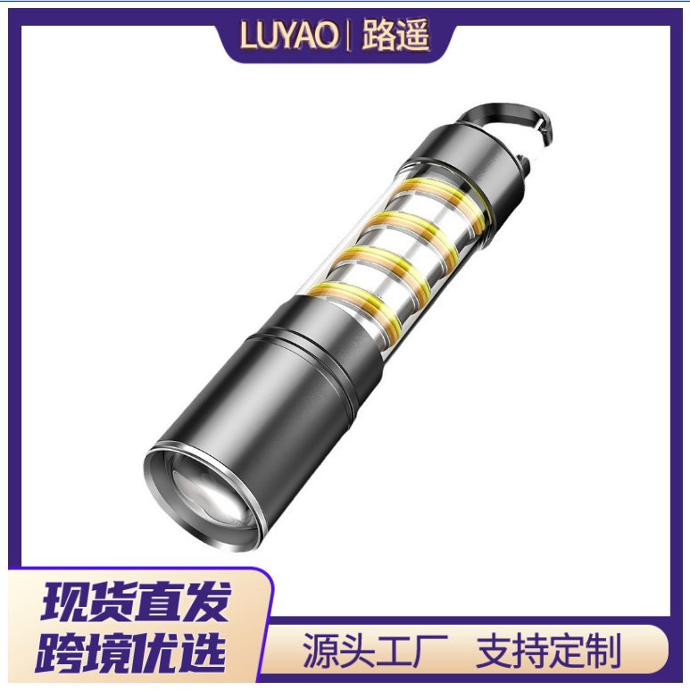 2024新型屋外強光充電携帯長航続超亮白レーザー懐中電灯多機能キャンプライト