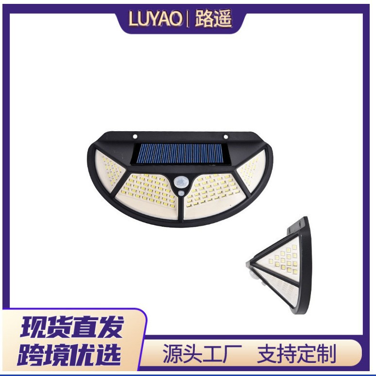 新型ソーラー壁灯高航続102led四面発光人体感応灯壁灯防水庭灯