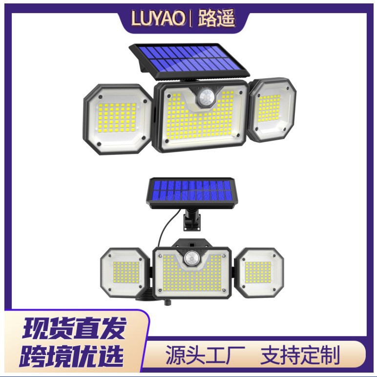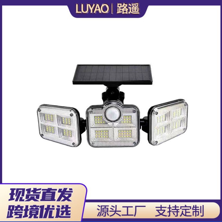ソーラーウォールランプLED138三頭分離型屋外人感センサー一体型家庭用中庭灯照明街路灯
