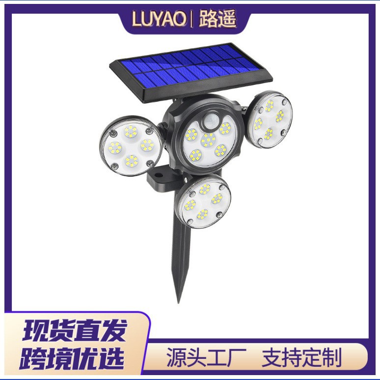 2021新型太陽エネルギーの壁の明かりの4頭の回転の屋外の防水の街灯は地面に人体の感応の庭の明かりを挿し込むことができます。