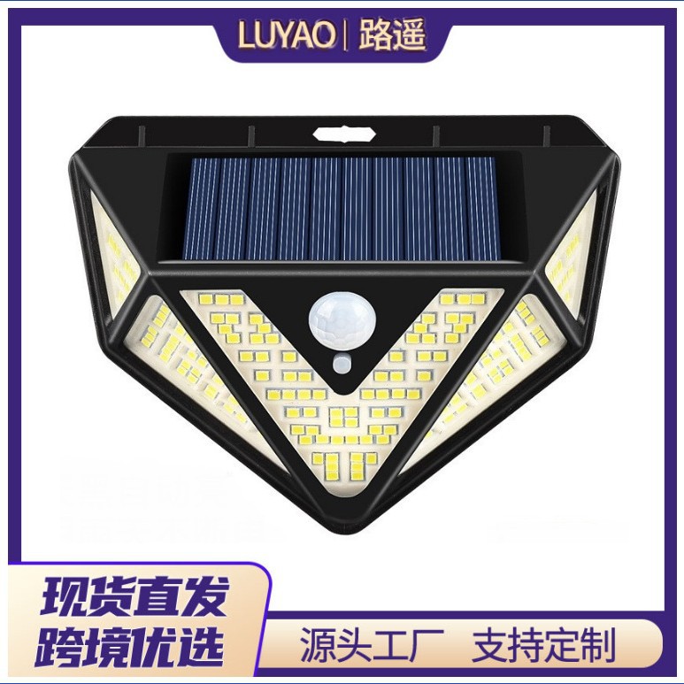 国境を越えた太陽エネルギー166led充電壁灯五面発光人体感応屋外防水庭灯照明灯