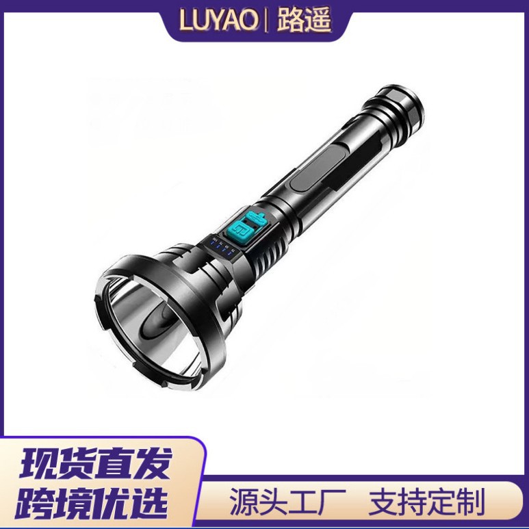 クロスボーダープラスチック强い光の懐中电灯USB充电led超明るいです远射家庭用屋外ハンドグリップ试験照明懐中电灯