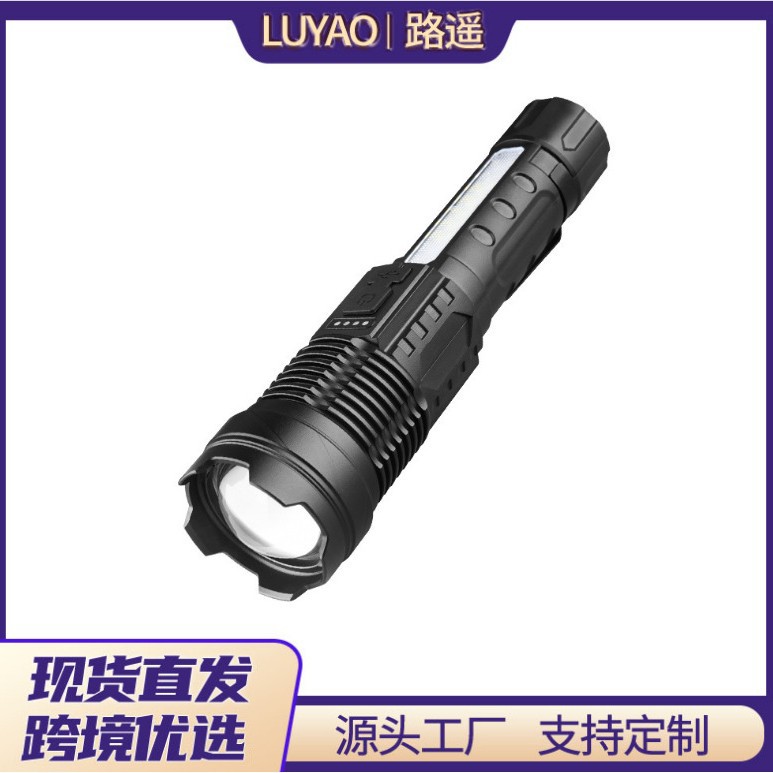 新品懐中電灯白レーザー懐中電灯A76屋外多機能照明灯P50サイドライト付き赤青警告灯