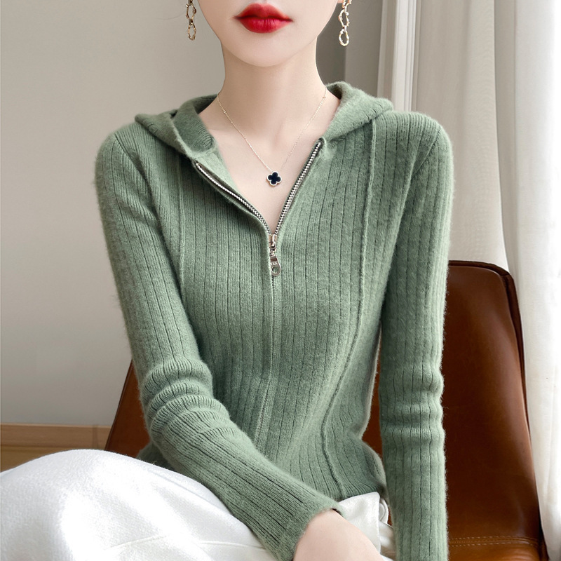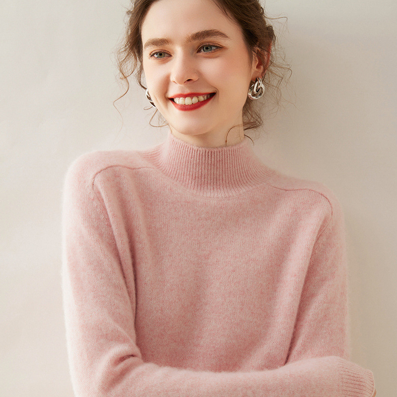 2024秋冬の新商品100% 純ウールセーター女性の第一線の成衣半高襟は肩袖のカシミヤセーターを厚くした