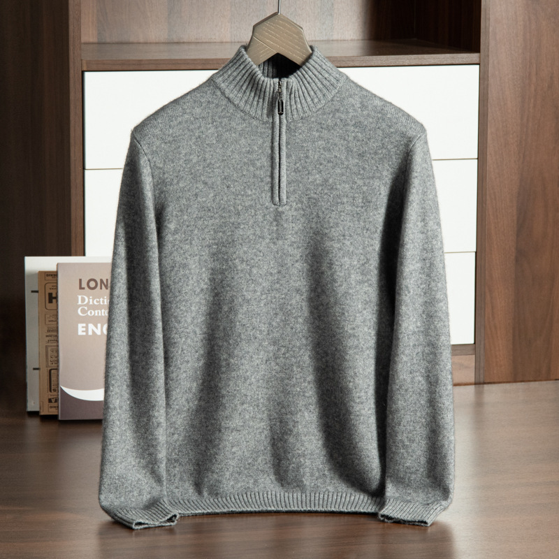 半高襟のファスナー山のカシミヤのシャツの男性の秋冬の厚いカシミヤの底のセーターの外で男性のウールのニットのセーターを掛けます。