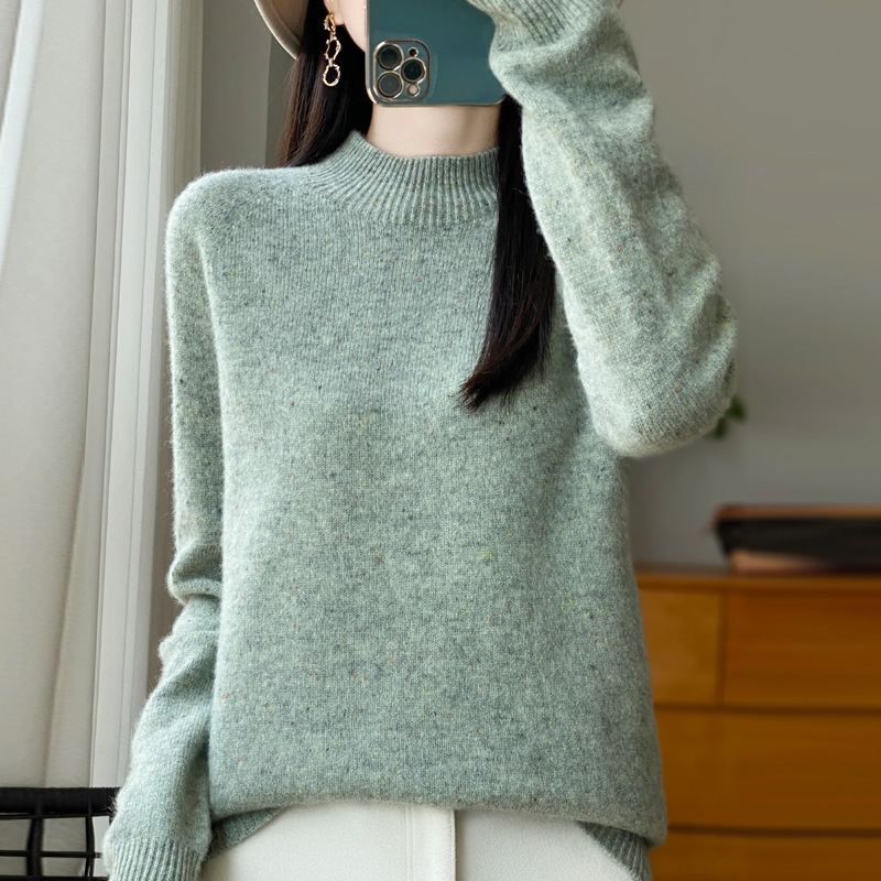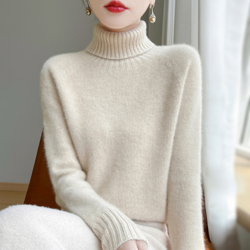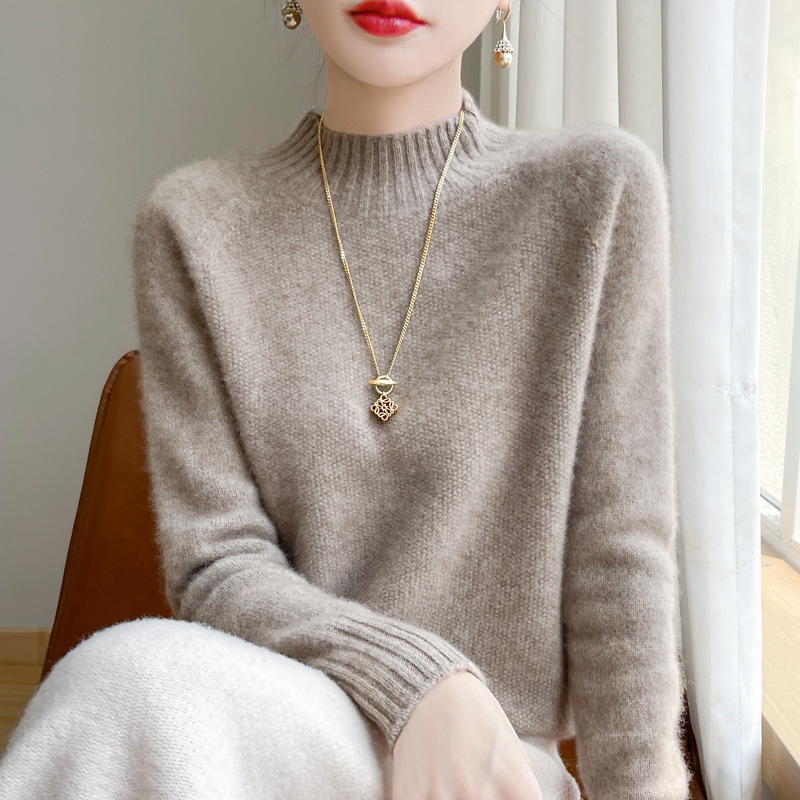 24秋冬の新型100純ウールのセーターの女性の半高襟のセーターはゆったりしていて、やせています。