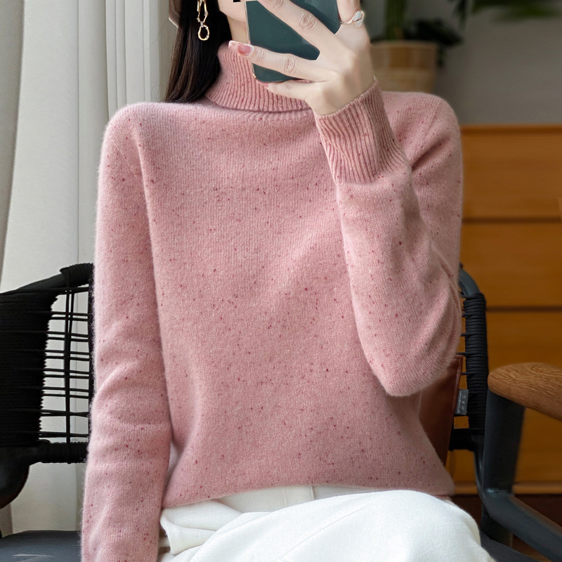 秋冬の新型の積み重ね襟の点の子供まりのウールのセーターの女性の高い襟のゆったりしているカバーの頭の厚いカシミヤのニットの底のシャツ