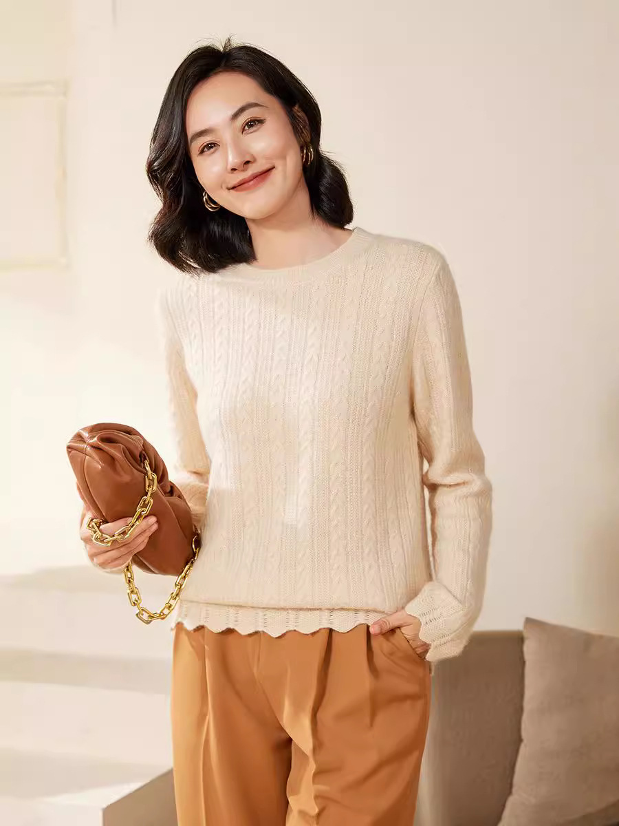 2024秋冬の新型カシミヤの女性の丸首のプルオーバー
