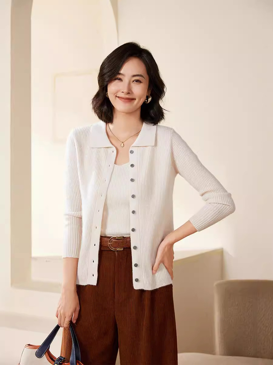 2024秋冬新作カーディガン女性vネックプルオーバー