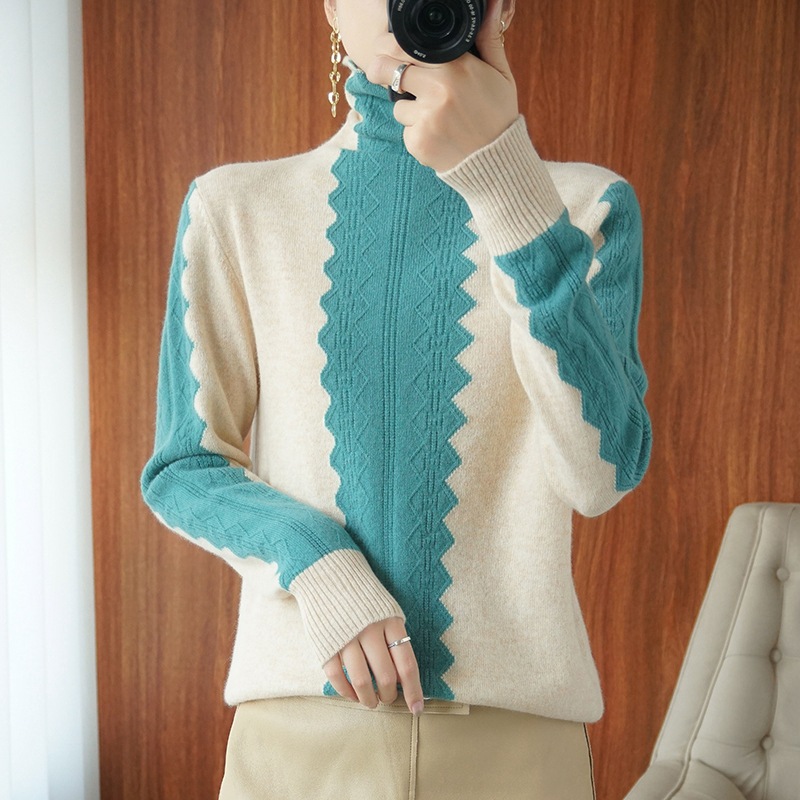 100% 純ウールの女性秋冬の新型ニットのカシミヤのセーターの半分の高さの底のシャツの組み合わせはゆったりしていて痩せています。