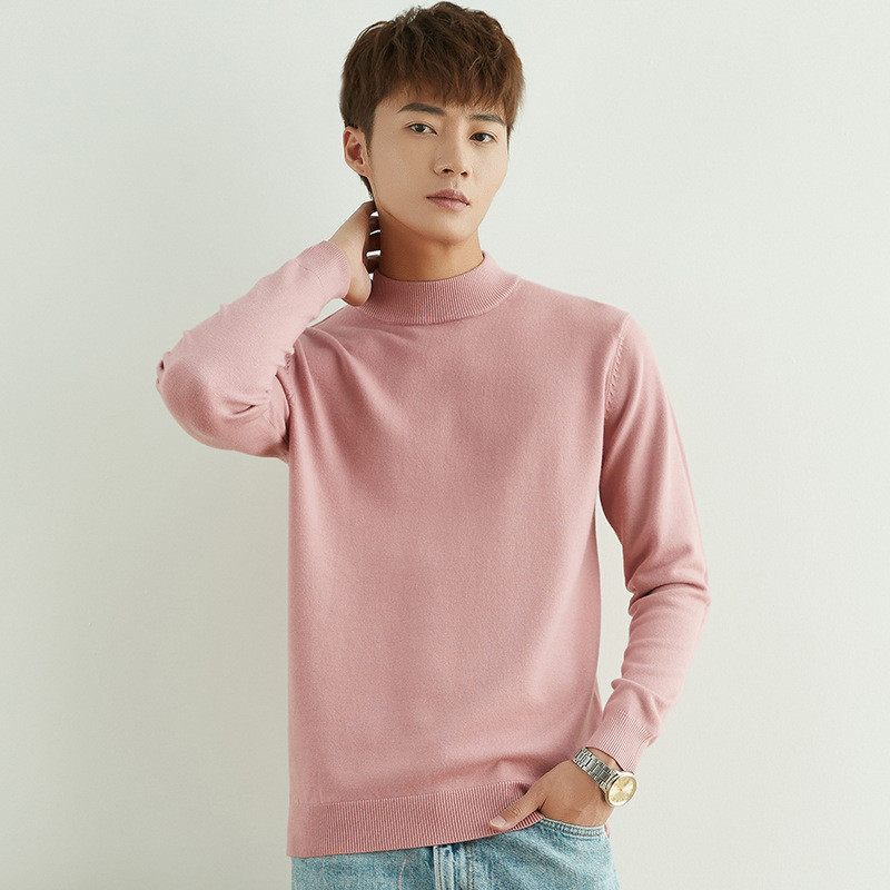 セーター男丸襟秋冬純色プルオーバー男式セーター中年カジュアルニット厚手保温半高襟