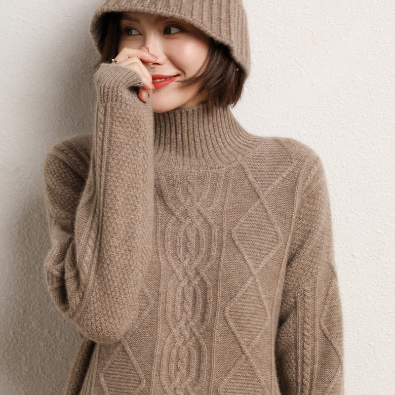 秋冬の新型100純ウールのセーターの女性の高襟の長袖の韓国版はゆったりとしています。