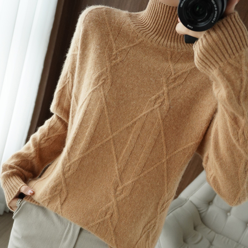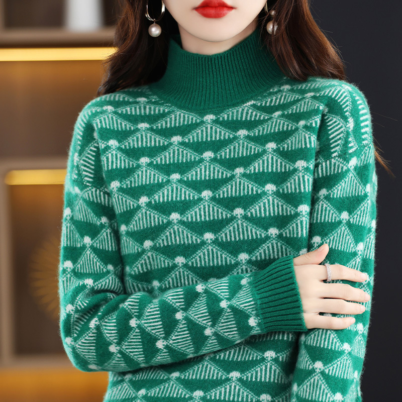 カシミヤの新型高襟の純色の菱の形がゆったりしています。