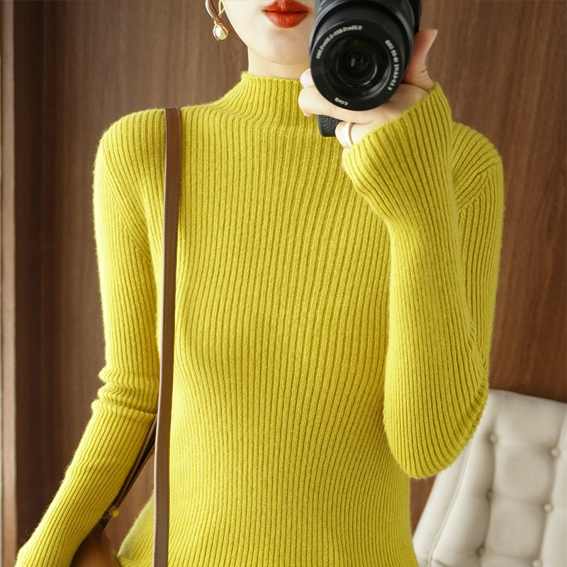 2022年秋冬の新型韓国版の芯の糸を包んで頭のニットの女性の中で普通の半高襟の長袖の底のシャツをかぶせます。