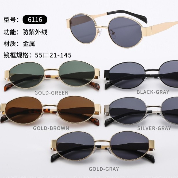 2025新型紫外線防止サングラス女性高級金属洋気欧米サングラス楕円猫眼寛脚眼鏡