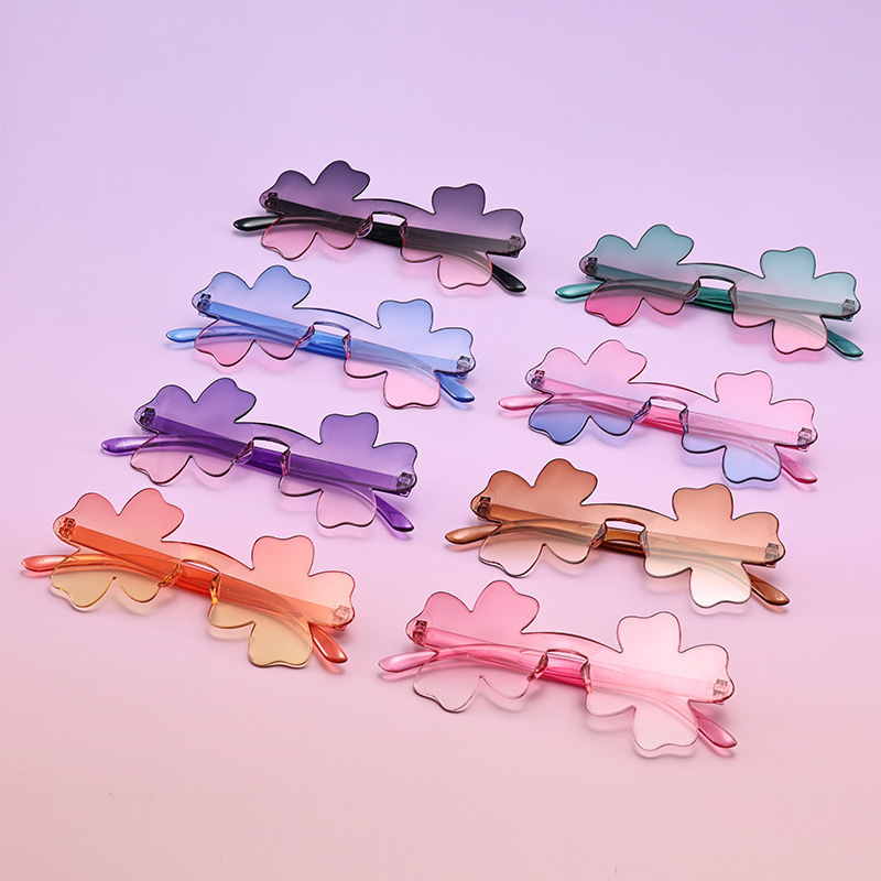 2024 リムレスリーフワンピース子供用サングラスゼリー四つ葉のクローバーベビーサングラスヨーロッパとアメリカのキャンディー子供用メガネ