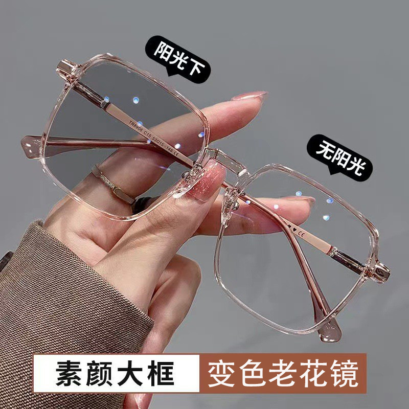 色が変わるブルーライト防止老眼鏡、大きなフレーム、高見え、スリムでファッショナブルなスタイル、ライブブロードキャスト人気の光に敏感な色が変わる老眼鏡