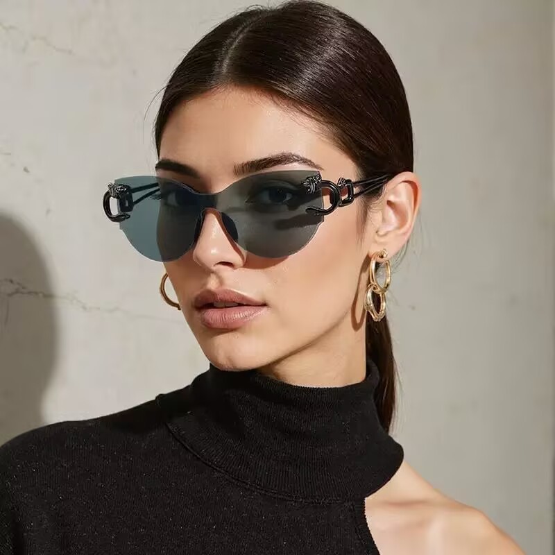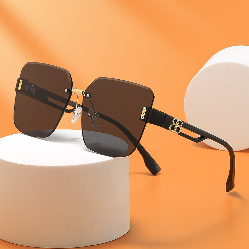 ハイエンドのスクエアフレームレスエッジカットサングラス、顔の大きな女性向けのインターネットセレブの個性、トレンディでクールなサングラス、スリムでファッショナブルなメガネ